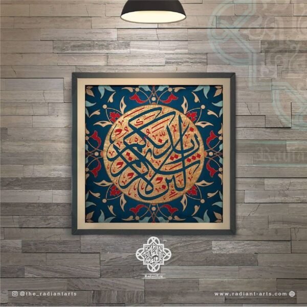 Blue, gold and red arabesque motifs glorify the Divine decree enshrined in this noble Quranic verse. May we remain forever grateful to our Noble Creator!