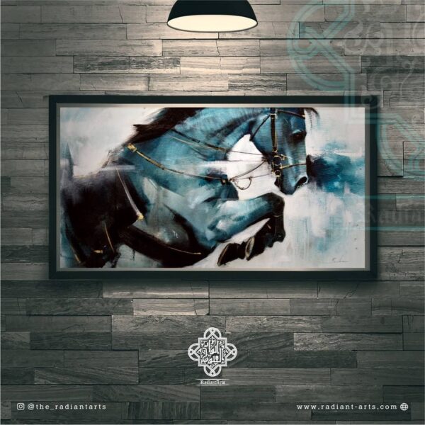 Inspired by the virtuous qualities of the horse, which is considered in Islamic lore as one of the noblest of creations, ‘Leap of faith,’ is a painting of a horse reflecting an indomitable spirit of a timeless dimension. With legs of courage and steadfastness, instead of blind competition, it treads the path of ‘inner truth’ reminding us that the race is never really with others but with our own selves.